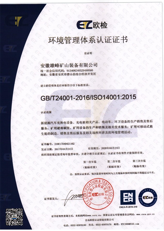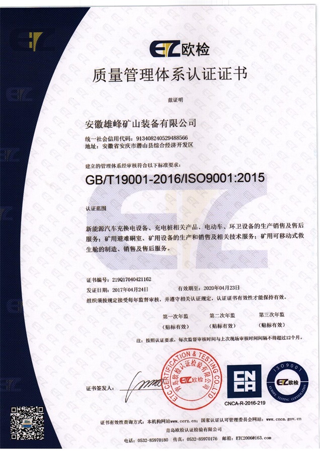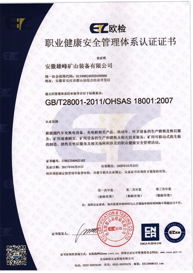 安徽天柱雄峰機電有限公司隸屬于安徽雄峰集團,公司座落在國家5A級風景名勝區(qū)--天柱山腳下,是一家專業(yè)從事研發(fā)、生產(chǎn)、銷售礦山機械、礦用安全設(shè)備、機電設(shè)備及國際貿(mào)易的現(xiàn)代高新技術(shù)企業(yè)。公司被評定為國家科技部創(chuàng)新基金項目和國債項目重點支持單位、安徽省優(yōu)秀創(chuàng)新型企業(yè)。公司擁有省級企業(yè)技術(shù)中心和2個研究所,并與中國電子科技集團合肥38研究所建立戰(zhàn)略合作關(guān)系。公司引用中國航天技術(shù),研發(fā)生產(chǎn)的礦用可移動式救生艙和避難硐室可以在礦井發(fā)送事故后,為無法及時撤離的礦工提供安全的避難和等待救援的場所。該產(chǎn)品經(jīng)過模擬災(zāi)變環(huán)境下真人106小時的生存試驗、高溫試驗、爆炸試驗等環(huán)節(jié)的檢測,已取得國家礦用產(chǎn)品安全標志證書,具備國際領(lǐng)先技術(shù);且已取得專利23項,其中兩項發(fā)明專利(大型密閉門新型專利、逃生裝置新型專利)。公司秉承“誠信贏得市場,創(chuàng)新引領(lǐng)未來”的經(jīng)營理念,在“瞄準高精尖,面向全球化”的發(fā)展戰(zhàn)略指導(dǎo)下,依托雄厚的科技力量和人才優(yōu)勢,致力打造一流的礦用安全裝備,保障礦工生命安全,共建人類幸福家園!